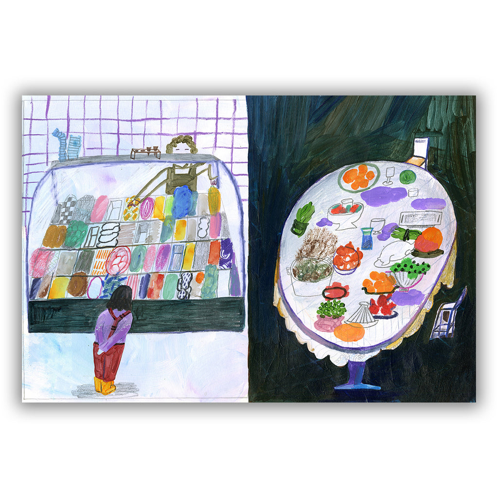 mixed media (acrylic, oil pastels and colored pencils)